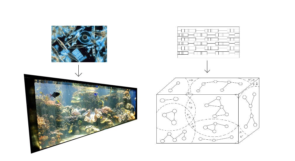 All this to say that, expanses, from our water-world to our cosmic-cradle, contain substrates, like plankton and plasma, and those substrates become bedrock for the growth of structures and further diversity. Sometimes more complex structures, systems, and objects emerge. Sometimes even living systems.