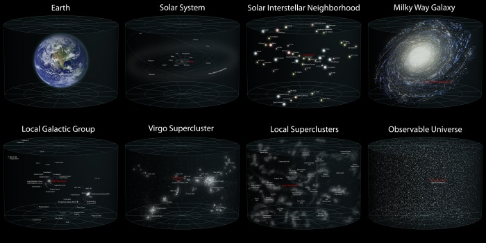 Scale of cosmic systems and organisational structures; voids in space are most prominent in local superclusters and the “observable universe” that just keeps on expanding (Source: CCA 3.0)