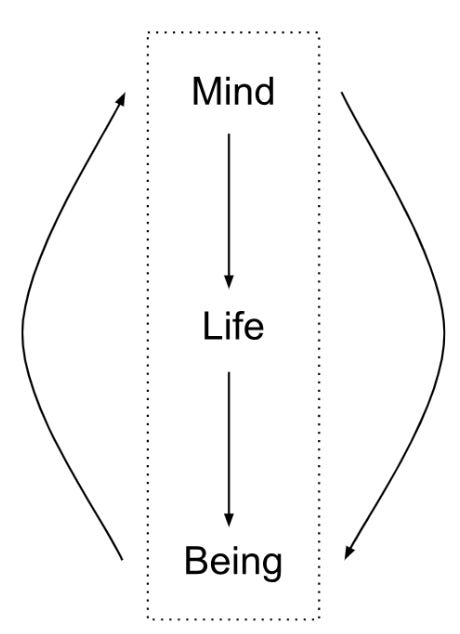 In many ways, “life” is quite subjective. Instead of thinking of systems in terms of being “alive”, it is becoming much more fruitful to think of systems in terms of “minds” and “being”. As brilliant thinker John Vervake puts it, “underneath mind is life and underneath life is being”. Visually, this stands: