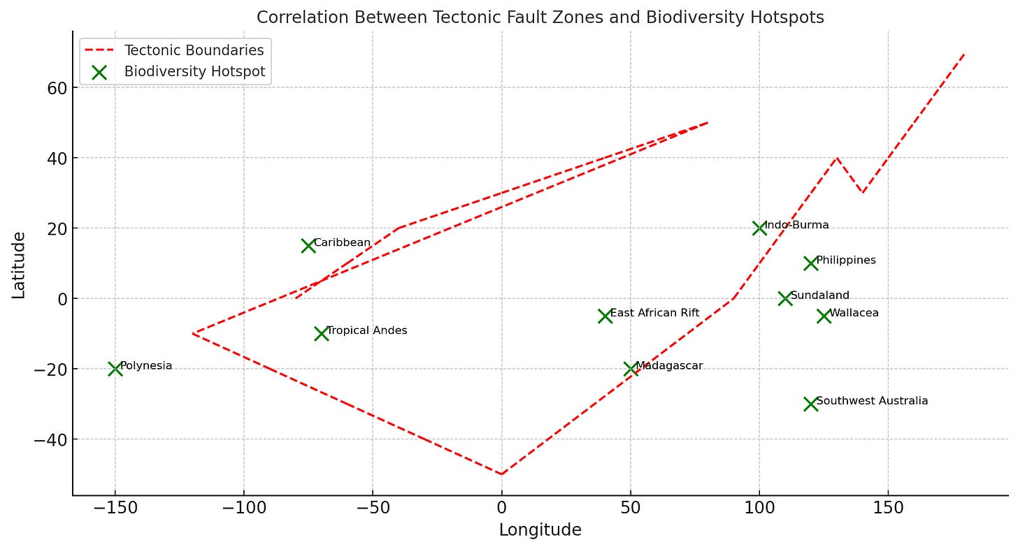 Traditionally it makes sense. Take volcanoes, which are found along both convergent and divergent fault zones: they feature a chemical composition which makes the surrounding soil highly fertile. This correlates to 80% of the selected fault-based biodiversity hotspots being found in or around regions of high volcanism; volcanoes are found along fault zones. Volcanism, when it isn’t paradoxically destroying the surrounding space, aids in creating pockets of fertility.