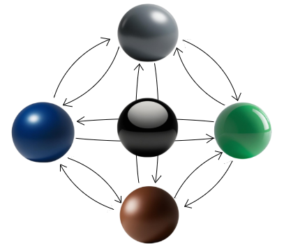 Back in the mid-twentieth century French philosopher Pierre Teilhard de Chardin proposed an “added planetary layer, an envelope of thinking substance… given the name of the Noösphere. (From noos, mind: the terrestrial sphere of thinking substance.)” Like the “tenth planet”, we are just stopping short of adding a “sixth sphere” to our current five-part FSM. Yet, in-keeping with the spherical spirit, I like to imagine this interwoven web of communication and information like one of those rubber band balls everyone used to try and make back in school. You know, like this one. Only, taking the place of strands of rubber, the Noösphere is held together under the binding force of three interconnected components: